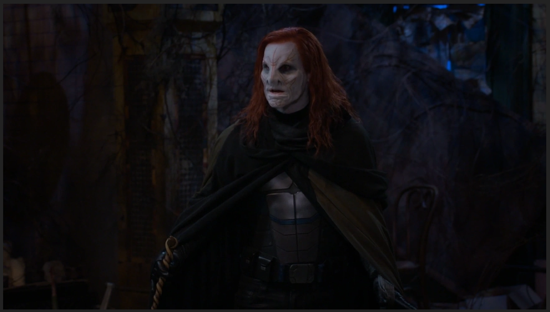 - His appearance/costume is extremely similar to the iconic antagonist of the Star Wars franchise: Darth Vader, and The Marvel Comics Group Super Villain Doctor Doom. Like Vader, he's related to the hero, a fact that gets revealed in a climactic confrontation.